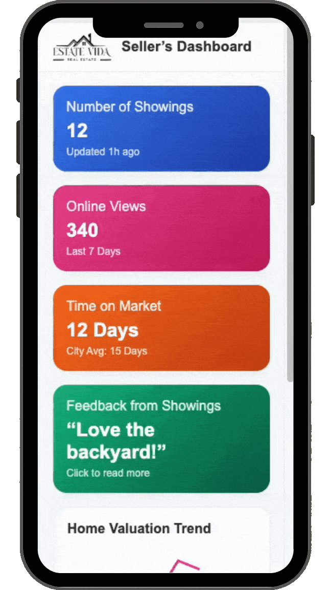 Real-Time Updates – Track showings, views, and offers instantly in the Estate Vida Portal.
